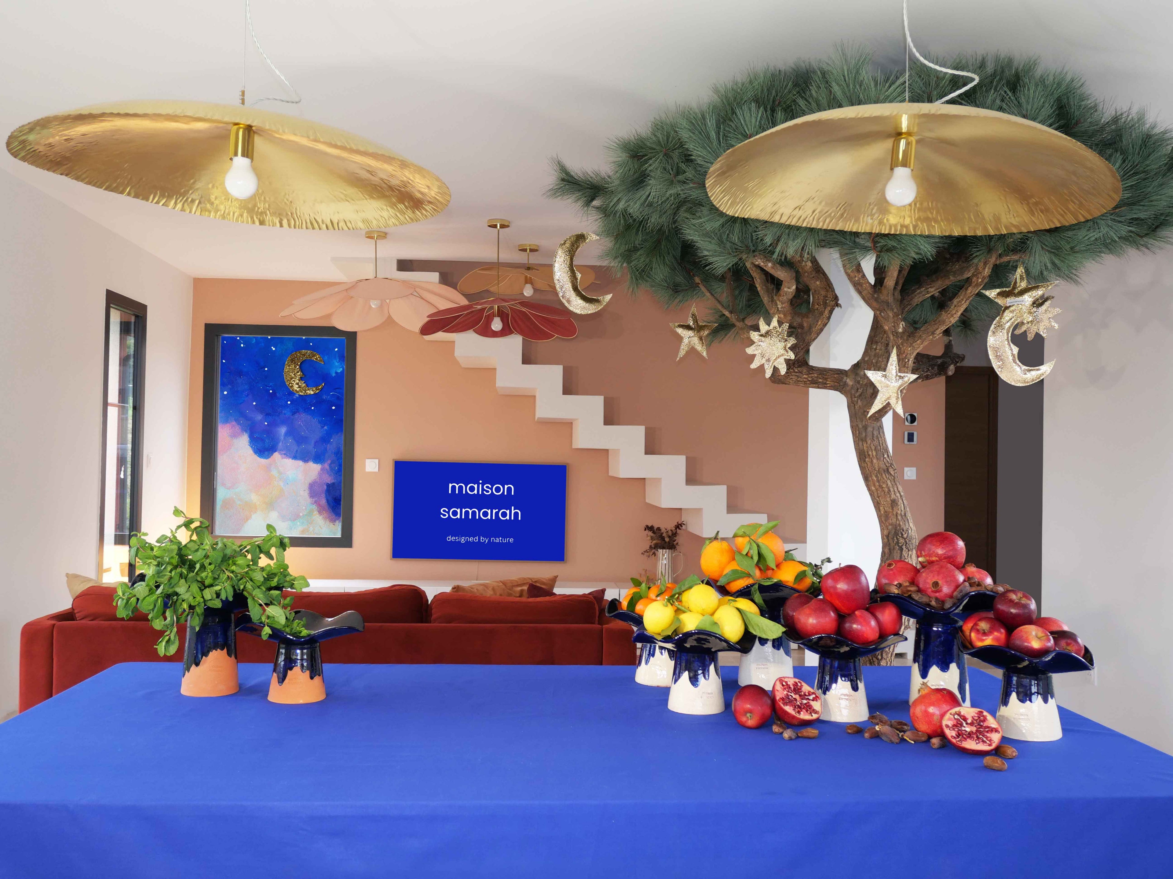 maison samarah© imagine de petits objets de décoration artisanaux, symboliques et poétiques, inspirés de la Méditerranée et des contes orientaux. Imaginés en Occitanie et façonnées par nos artisans en France et au Maroc, nos créations mêlent céramique, laiton, textile et poésie.